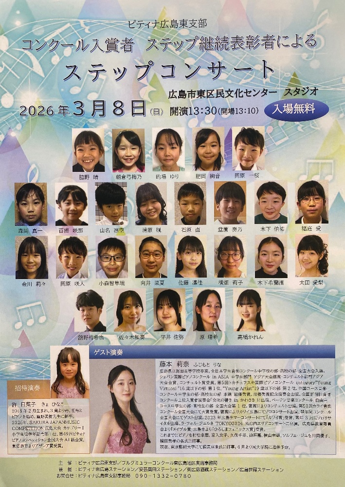 コンクール受賞した方々の披露演奏会。教室からも生徒さん出演します🎵